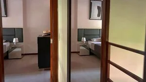 Inside, the residence blends natural elegance with modern comfort. The spacious living room flows seamlessly onto a wide balcony overlooking the greenery, perfect for indoor-outdoor living. Hardwood and glass finishes add a touch of sophistication, while tasteful furnishings and appliances are included.