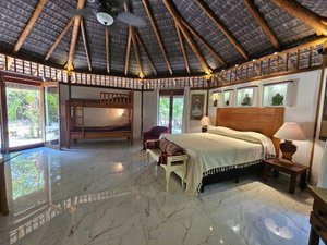 The main residence is elegant, with spacious rooms and living areas that offer ocean views from nearly every direction. High-quality finishes like solid wood flooring and custom furniture add a refined touch.